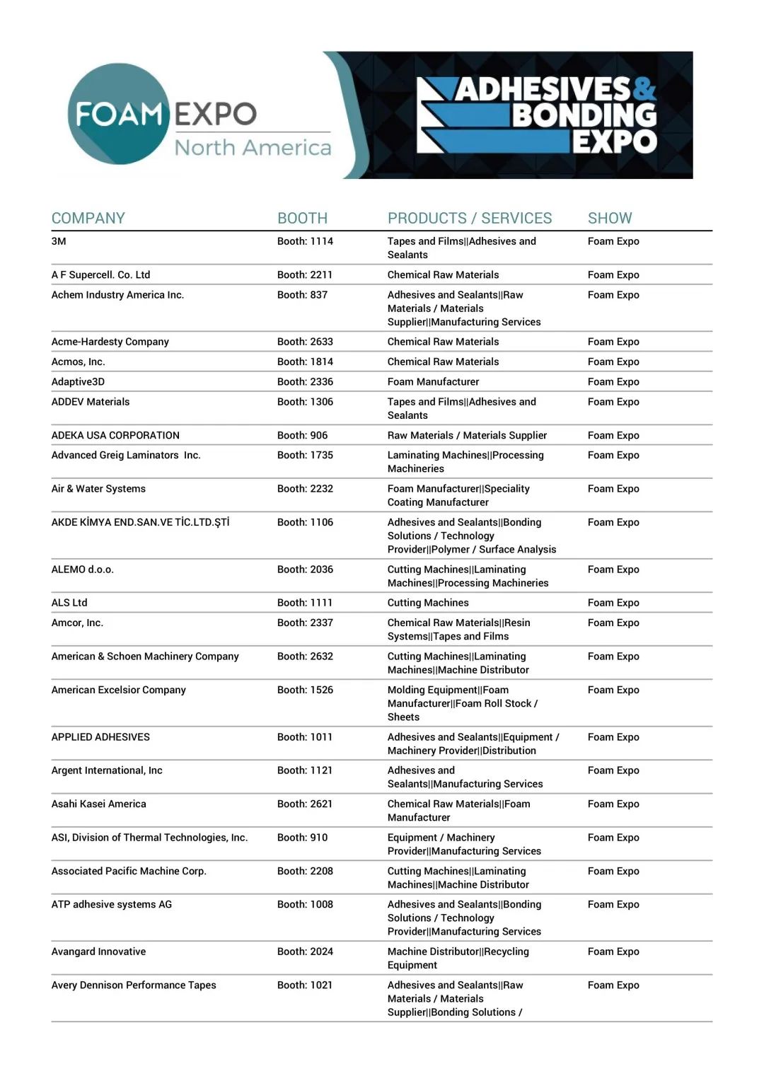 發泡和膠黏劑領域頂級品牌的參展和加持: