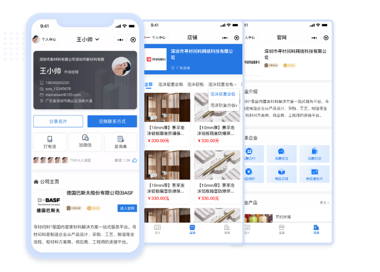 個人專屬有材微信小程序名片,包含個人主頁,管理企業店鋪、企業主頁。在微信生態內自由轉發,運營私域流量。