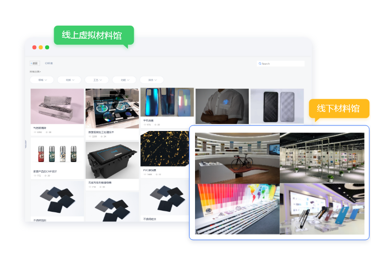 線上虛擬材料館,線下材料館,客戶訪問記錄實時同步到有材。